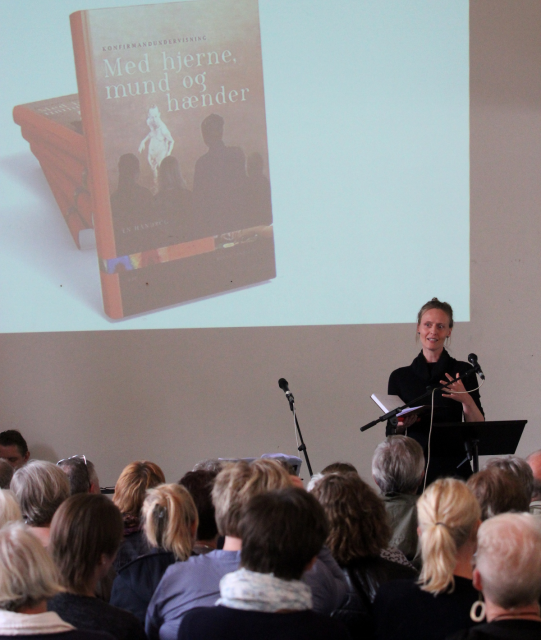 Folk fra nær og fjerne var samlet i Folkekirkens hus til en inspirationseftermiddag om konfirmandforberedelsen. Skolereformen udfordrer den traditionelle undervisning og en ny anordning rummer nye målsætninger. Den musikalske trio varmere rummet op med blide toner og eftertænksomme tekster. Fællesang blandede sig med indlæg over temaet og redaktør Ingrid Ank fra forlaget RPF præsenterede den nye håndbog til konfirmandforberedelsen. Et par ”postkonfirmander” bidrog til festligheden på deres blæserinstrumenter med en særlig udgave af ”I skovens dybe stille ro”.