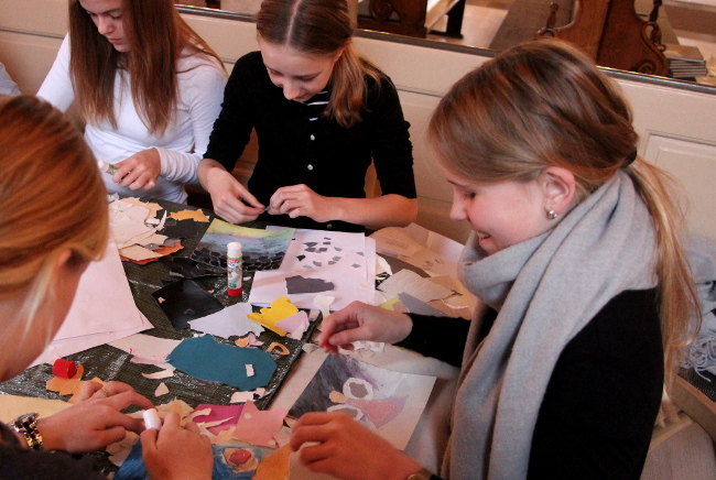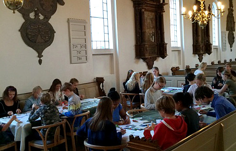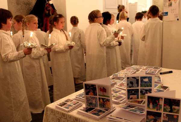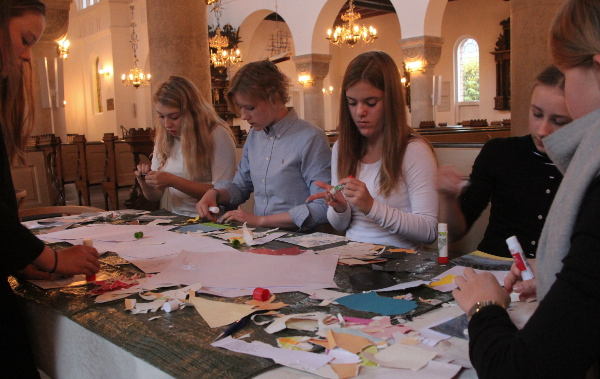 To hold konfirmander ved Vor Frue kirke omsatte strofer fra en lang række julesalmer til billeder med stærke farver. Indholdet i salmerne blev visualiseret med konfirmandernes egen fantasi. Deres værker indgik på en integreret måde i undervisningen, som optakt til advents- og juletiden. De mange motiver blev derefter grafisk behandlet og layoutet til jule- og gavekort, som de unge skulle sælge til et godt formål med et etisk perspektiv. Efter præstens drøftelser med de unge endte de med at støtte SOS-børnebyerne. Som de skrive på salgsplakaten: ”Intet barn skal vokse op alene. Du kan være med til at hjælpe børn, der har mistet deres forældre p.g.a. fattigdom, sygdom eller krig. Du kan bidrage til at disse børn for et trygt hjem i en SOS-børneby. For 1000 kr. kan vi sende et barn skole i et helt år”. Kortene kostede fra 5 til 15 kroner afhængig af størrelse.