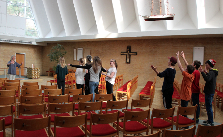 En temaformiddag rummer flere arbejdsmuligheder end to lektioner. Det blev på alle måder bekræftet i Margrethekirken, der i samarbejde med Ansgars kirke, havde samlet over 60 konfirmander til en formiddag med påsken som tema. Forløbet var tilrettelagt med en variation, så der blev mulighed for at arbejde med både tanker, hjerte, hænder og krop. Der var tid til morgensang med refleksion og bøn, helligdagenes fortællinger og sammenhæng, workshops, fællessamling, hyggeligt samvær og salmesang.Nedenfor bringes nogle fotoglimt fra formiddagens aktivitet.